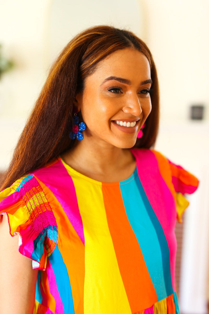 Blue & Pink Floral Square Neck Crinkle Smocked Top