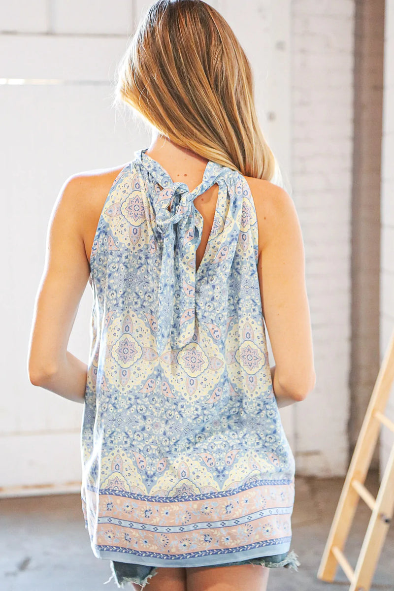 Boho Print Keyhole Halter Neck Woven Top