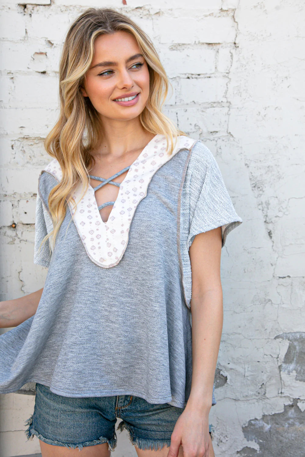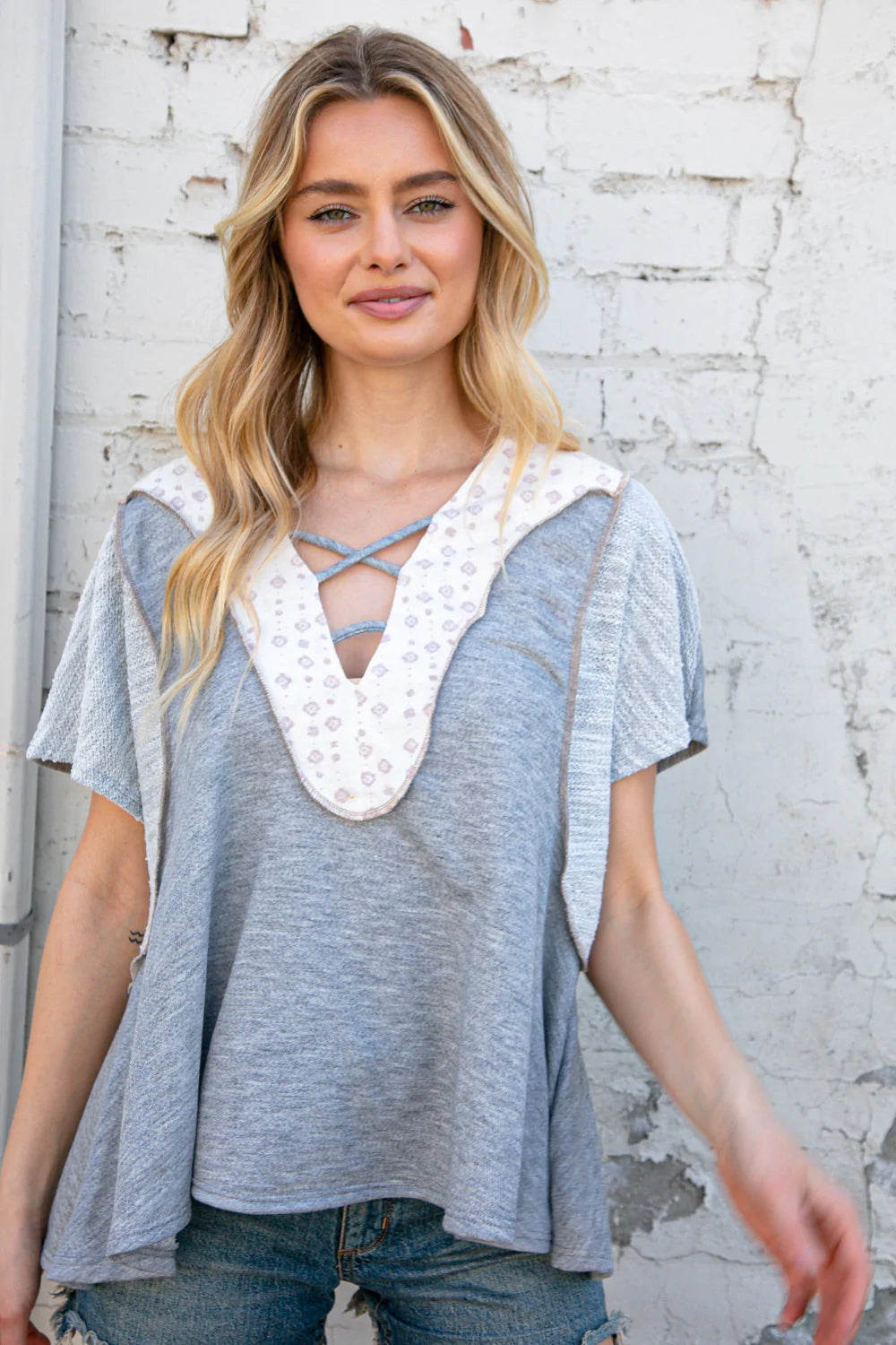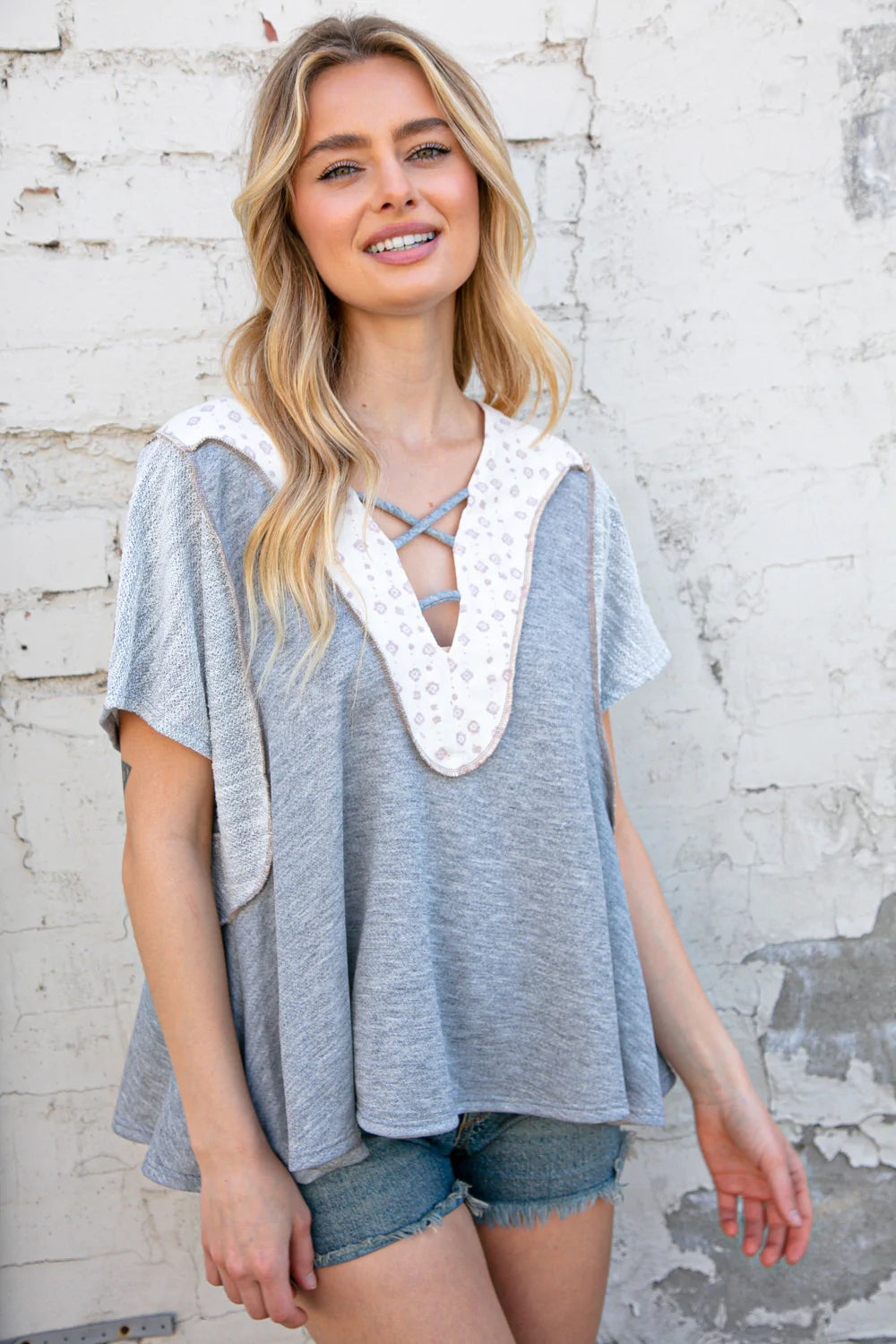 Triblend French Terry + Boho Print + Criss-Cross Design