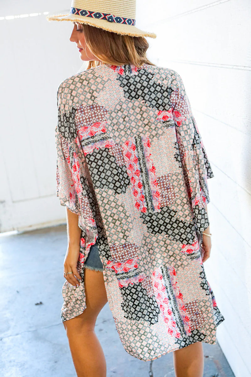 Charcoal Boho Rayon Challis Cover Up Kimono