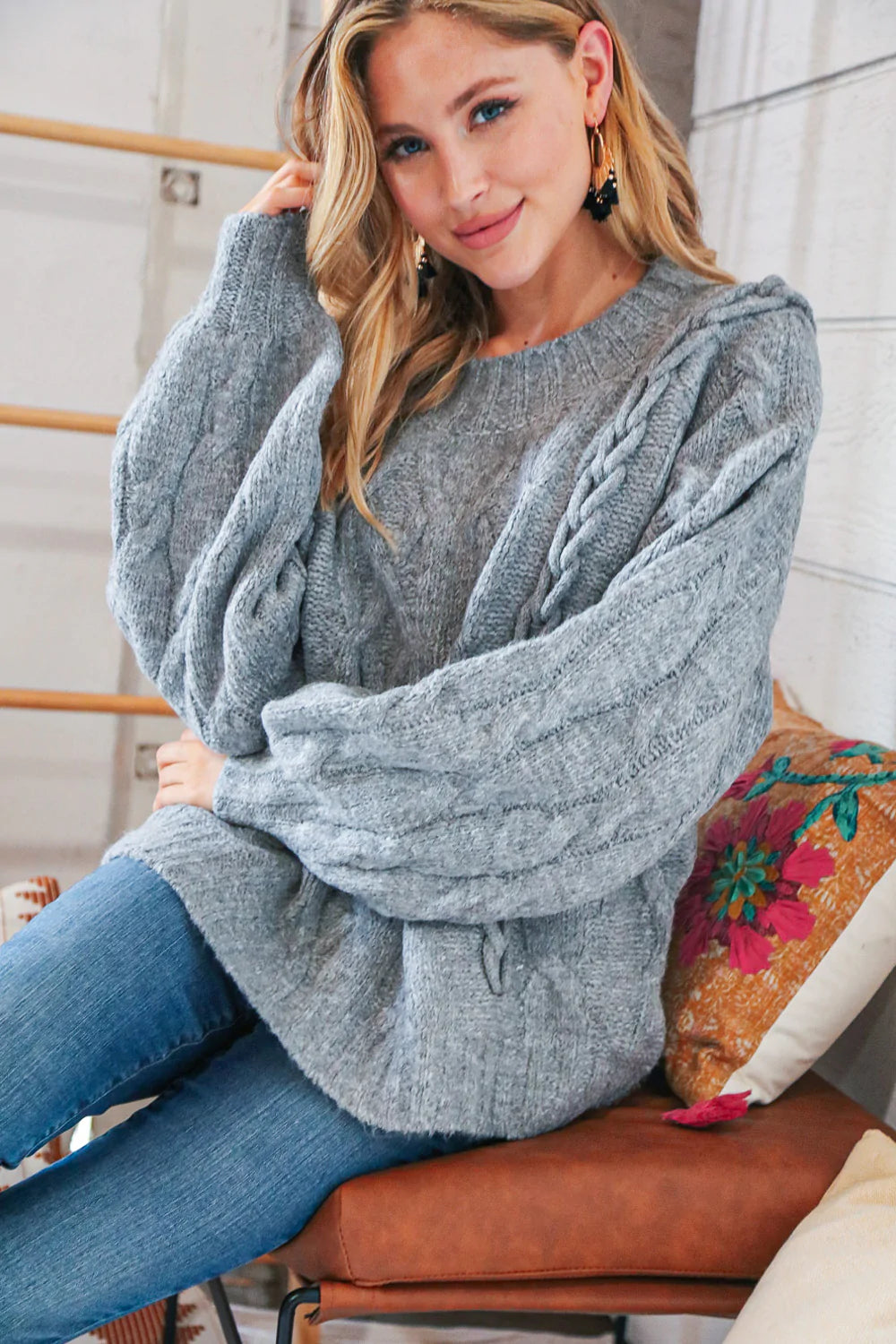 Cable Knit + Bubble Sleeves + Ribbed Hem and Cuffs