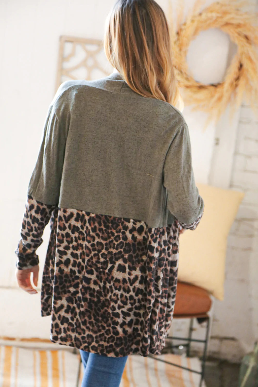 Olive Hacci Animal Print Colorblock Open Cardigan