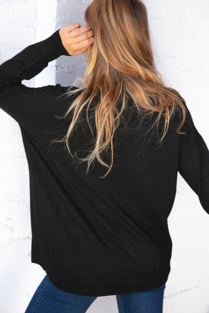 Midnight Black Out Seam Turtleneck Sweater