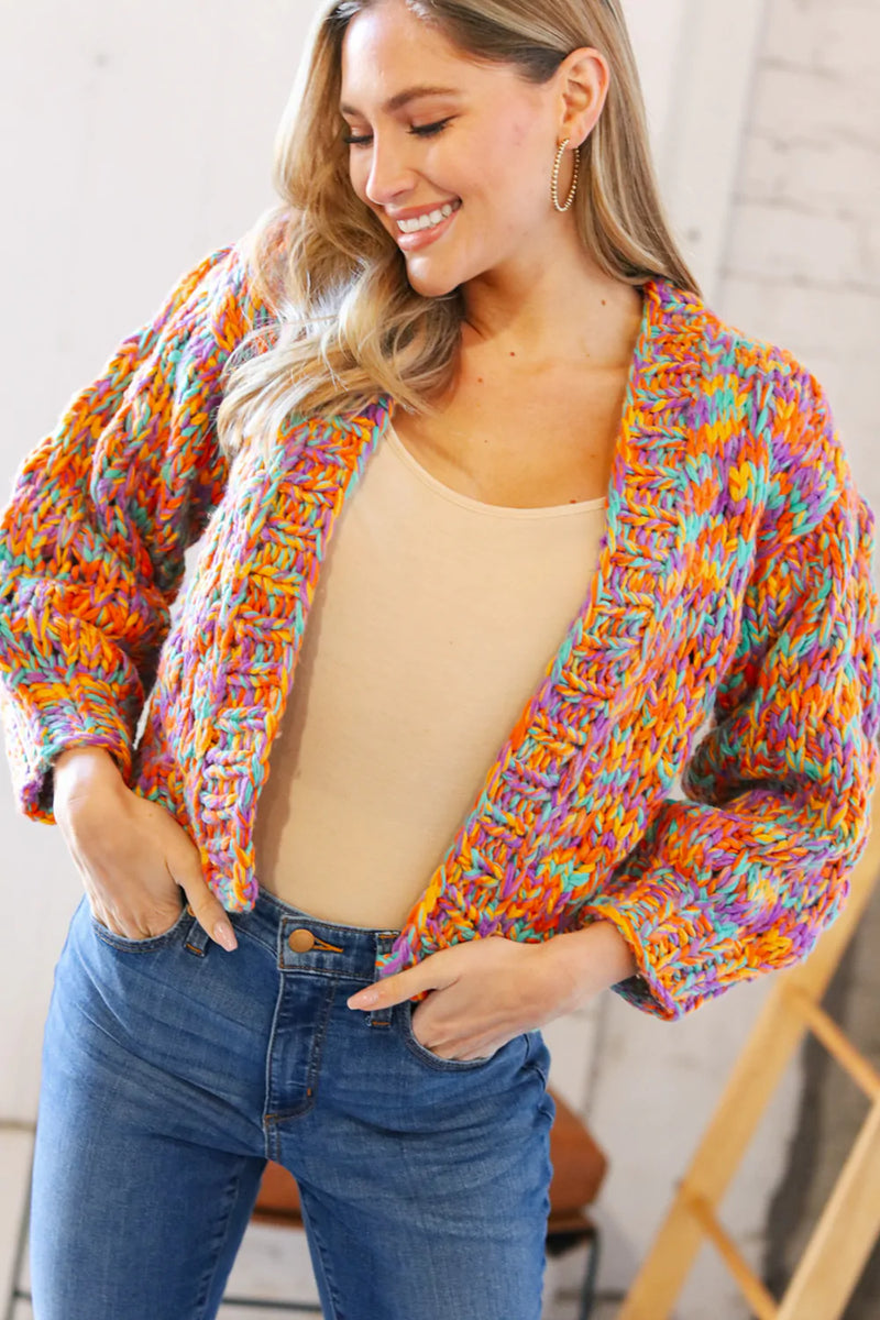 Multicolor Chunky Knit Cropped Open Cardigan
