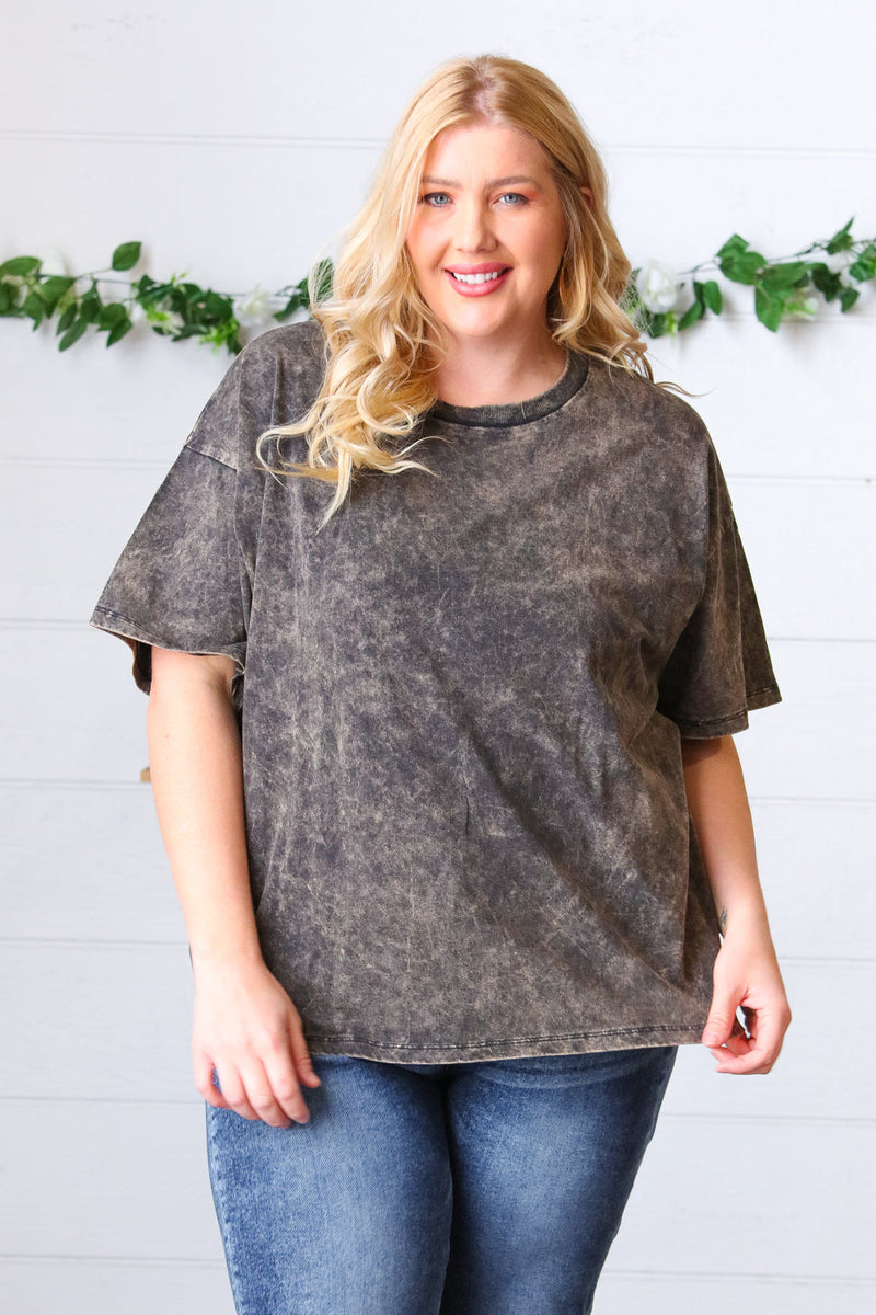 Black Cotton Wash Short Sleeve Crew Neck Top