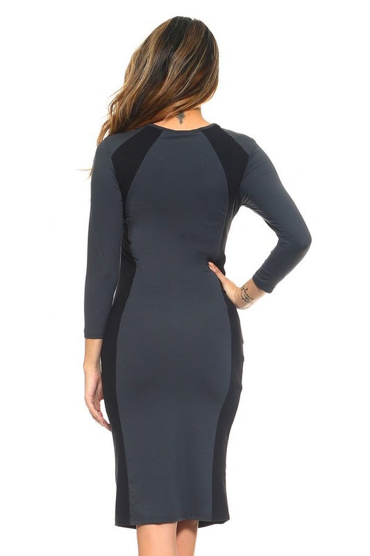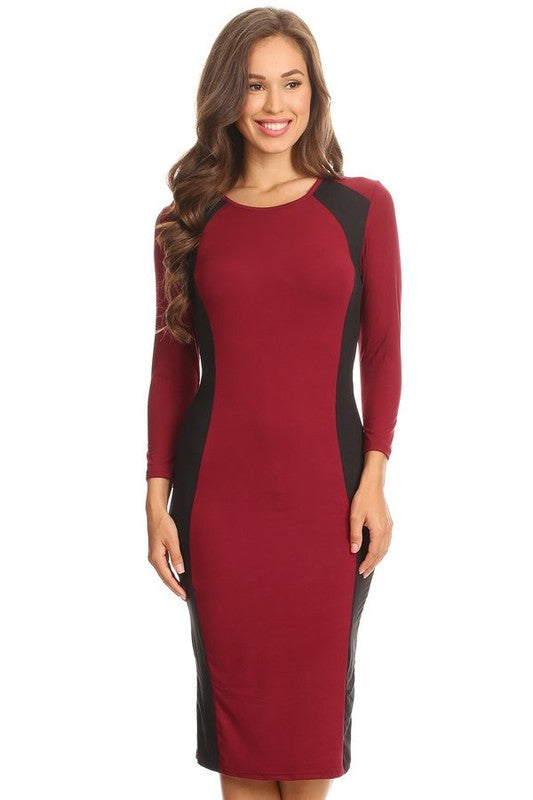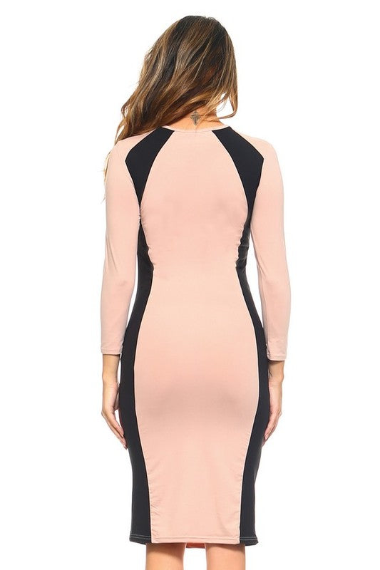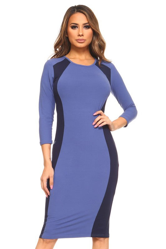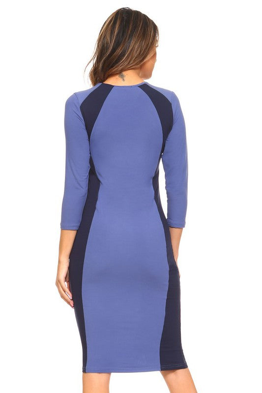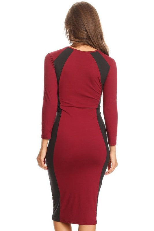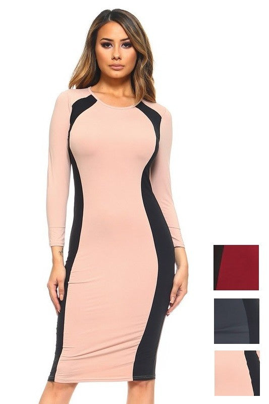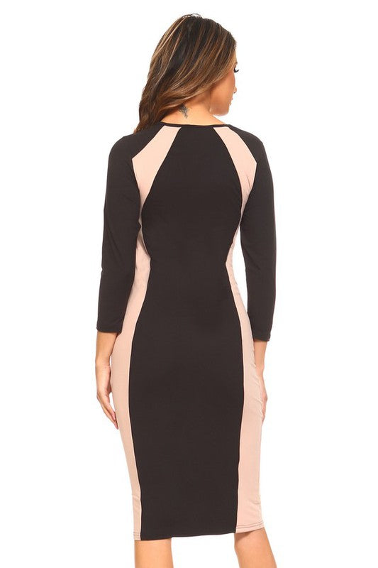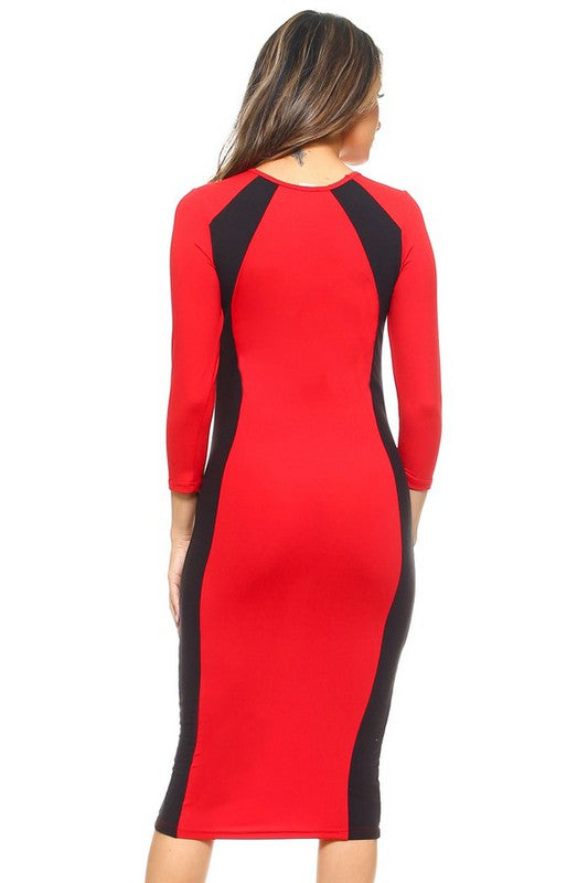 Turn heads this season with this gorgeous color block midi dress! Super colorful and fab day or night, it features a contrast hourglass panel front for flattering illusion look and solid black for the other part.