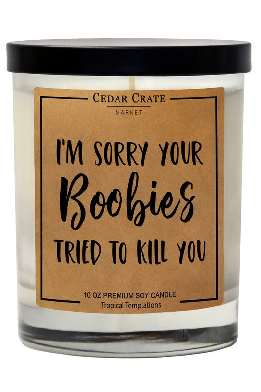 Sorry Your Boobies Tried To Kill You Soy Candle